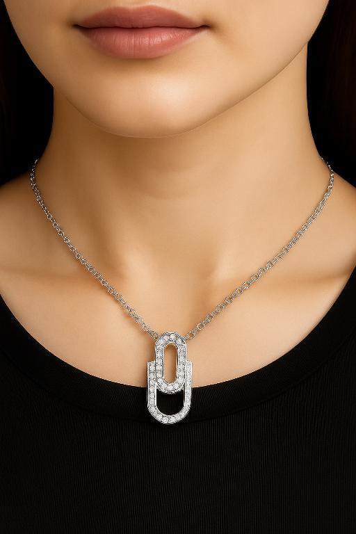 Stylish 925 sterling silver pendant necklace featuring a modern double-link design, accentuated with sparkling stones for an elegant everyday look.