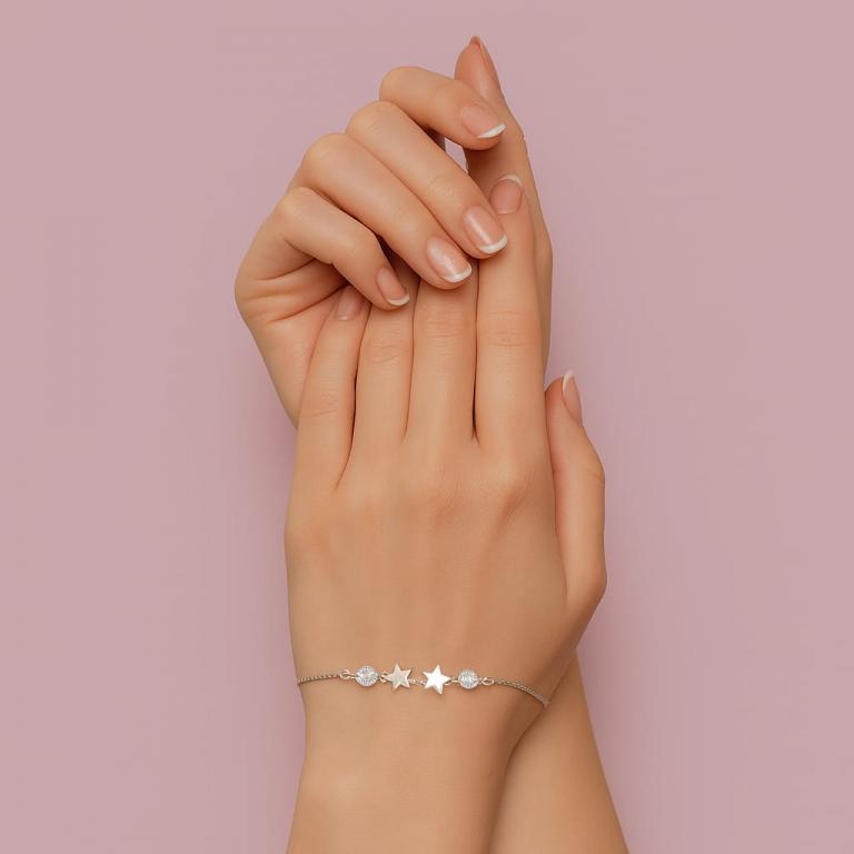 Shine bright with the 925 Sterling Silver Starry Charm Ladies Bracelet from House of Syl. This elegant bracelet features a delicate silver chain adorned with twin star motifs, beautifully complemented by shimmering cubic zirconia accents.