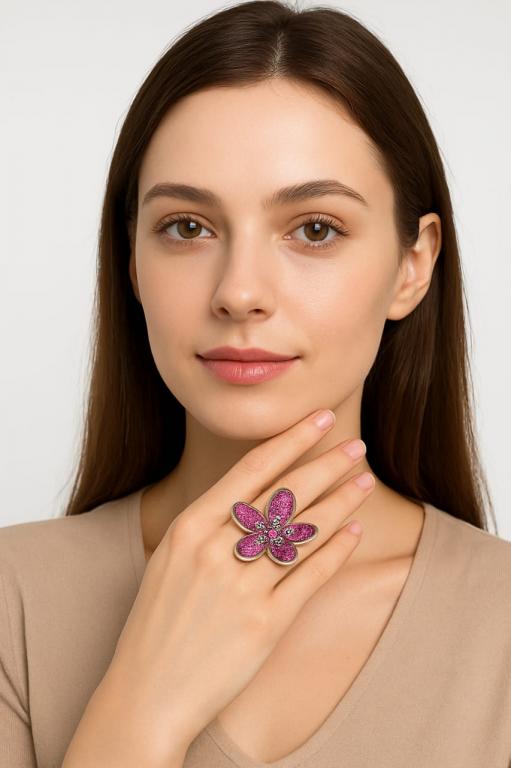 • Elevate your jewellery collection with the Floral Bloom Sterling Silver Ring from House of SYL. Crafted in 925 sterling silver, this exquisite ring showcases a bold flower design encrusted with radiant Violet stones and shimmering white accents. Perfect for parties, festive occasions, or daily glamour, this ring blends modern artistry with timeless charm. A statement piece for women who love unique designs, this floral ring makes an ideal gift for birthdays, anniversaries, or special celebrations.