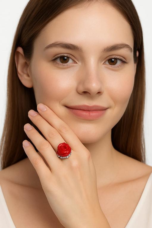 Designed as a cocktail statement ring, it is perfect for special occasions such as weddings, anniversaries, parties, or as a romantic gift for women. The vibrant rose paired with sterling silver creates a luxurious and unforgettable look.