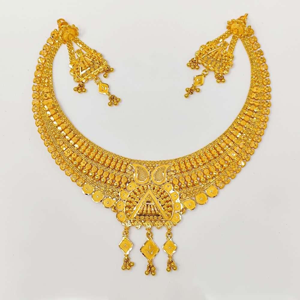 22 Karat Pure Gold Necklace set, with rough and glossy poilish combination, best for party wear, Approved by Beuro of Indian Standards.delivery time 10 to 15 Days.